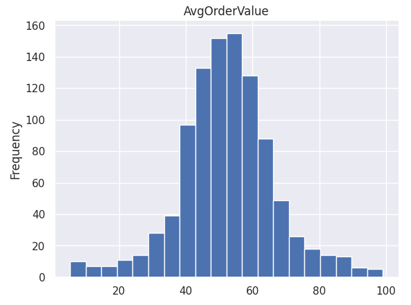 Histogram of Average Order Value (AvgOrderValue): This contributes to understand the distribution of average order value.