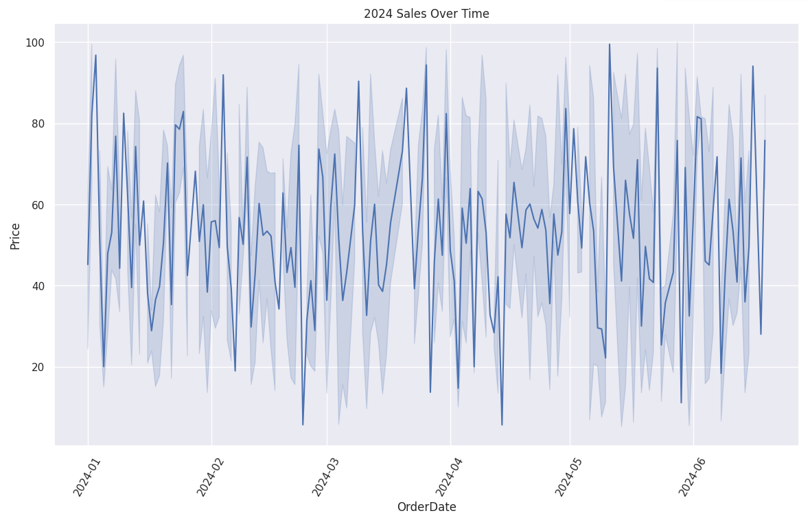Analyzing 2024 sales data over time is crucial for understanding trends, and seasonal patterns. By leveraging the robust visualization tools offered by Seaborn, you can gain insights into not just the peaks and troughs of your sales performance, but also the factors driving them.
